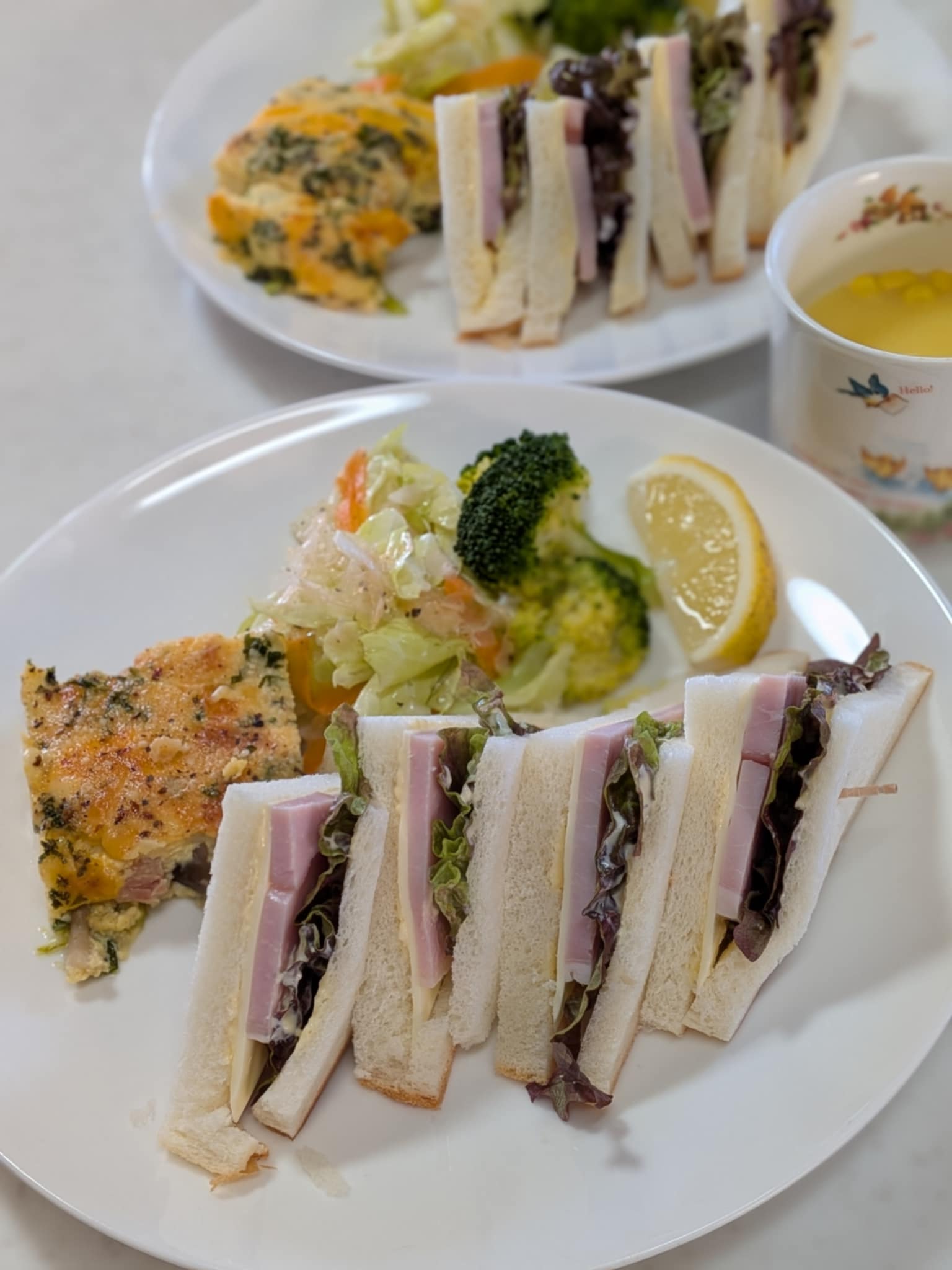 パンにもほの風ファームで収穫したサニーレタスをてんこ盛りしてサンドイッチ