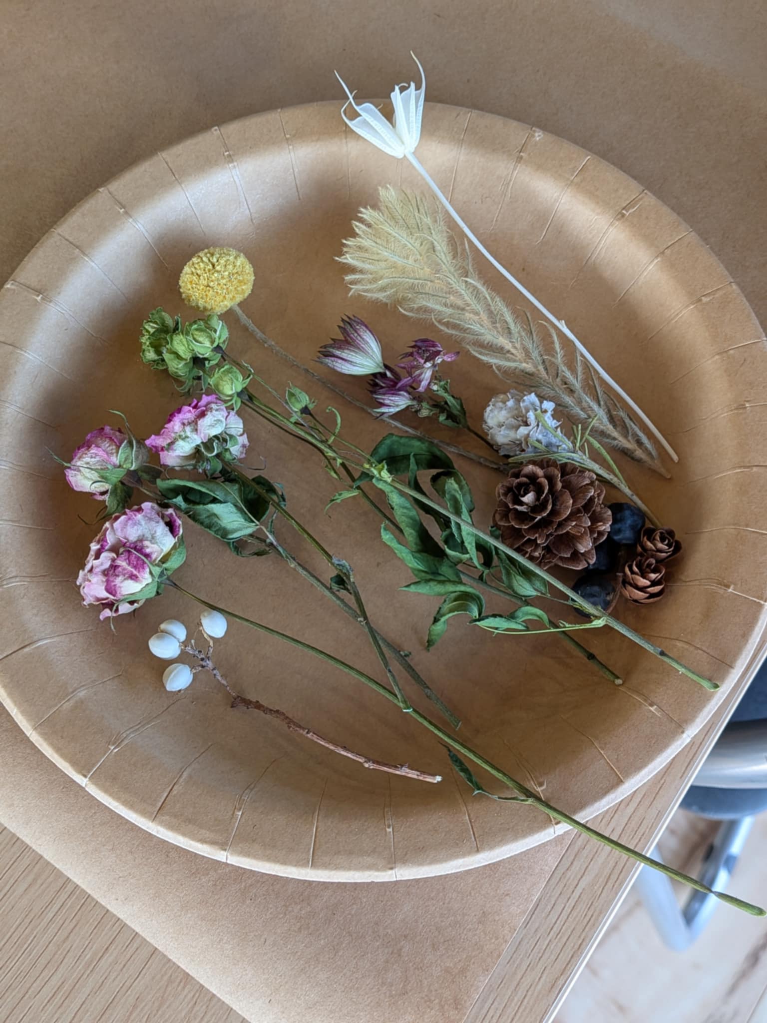 材料は手作りのドライフラワー