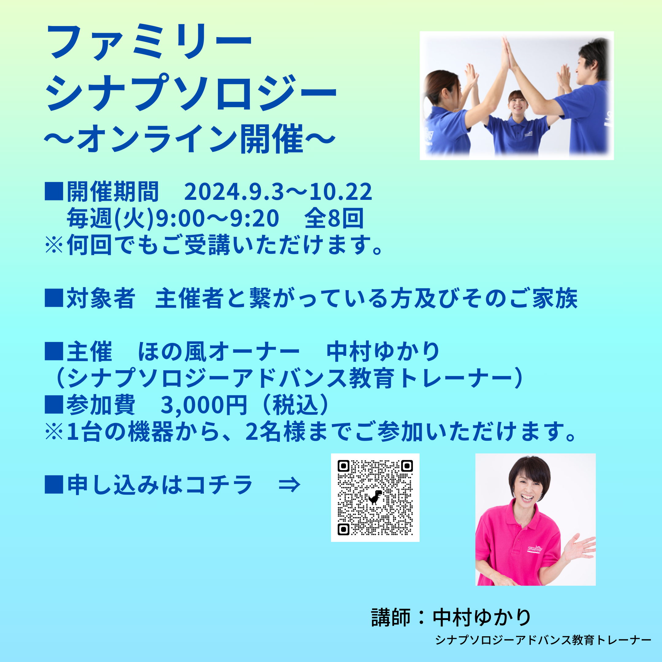 ★ファミリー・シナプソロジー★オンライン8回コース 2024.9.3~スタート